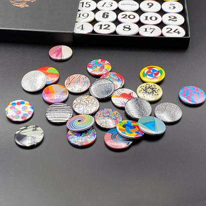 Stereohype's luxury Advent Calendar Gift Box contains 24 + 1 themed button badges – selected from Stereohype's over 1600-strong collection of designer button badges. The designs are hidden with removable stickers featuring numbers 1–24. Simply peel off the daily sticker to reveal the themed button badge artwork. Wear them, collect them, give them to a friend and spread the button badge love. Available calendar themes are Cats, Dogs, Fun, Yummy, Abstract and Monsters.