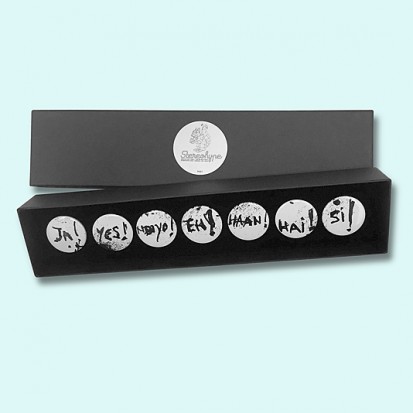 Each of these long luxury gift boxes contains seven of Stereohype's popular button badges. Selected designs are taken from Stereohype's growing button badge collection. So-called Artist Gift Boxes feature button badges designed by only one of Stereohype's super-talented 600+ international contributors – artists, illustrators, designers, architects, photographers, collectives and studios. Inside the elegant matt black cardboard gift box is a black flock pad and badges are directly pinned into it. All Stereohype button badges available at stereohype.com are classic high quality one inch (25mm) metal back badges with so-called D-pin (although it looks more like an 'e'). Tiny stickers at the back of each button badge mention the artist, release date, series number, etc. Badges are printed and encapsulated with love and care in the United Kingdom.