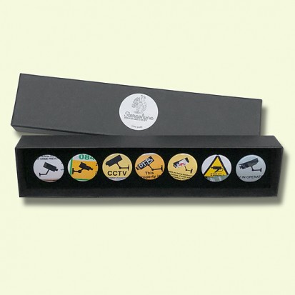 The seven artworks are also available as Button Badge Motif Print. Another CCTV gift box is also available featuring actual photographs of CCTV cameras.