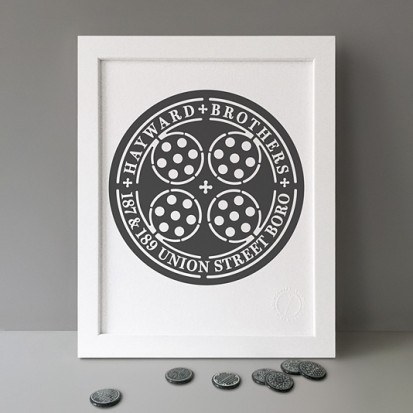 Button Badge Motif Print (STBBMP) — This carefully curated edition features designs from Stereohype's ever-growing one inch (25mm) button badge collection. The circular artworks are enlarged to seven inch (178mm) and printed on demand on a beautifully textured paper (portrait, 8 x 10" / 203 x 254mm). The print series already includes over 500 artworks and will further grow to be as rich and versatile as Stereohype's widely-acclaimed button badge collection. The badge collection already features over 1,700 artworks by over 600 established and emerging illustrators, graphic designers, typographers, photographers and artists from around the world. Some of Stereohype's button badge motifs are clearly better suited to be enlarged and featured on a print than others, but many hundreds of designs will make amazing print motifs. More prints are regularly added to this Stereohype range. Each print comes with the according button badge. We also have an optional custom frame for Button Badge Motif Prints (as seen in previews). This wooden high quality custom frame is built with a matt, white 'small alpha' frame made by our local London, Clerkenwell framer. Frames are also made on demand.