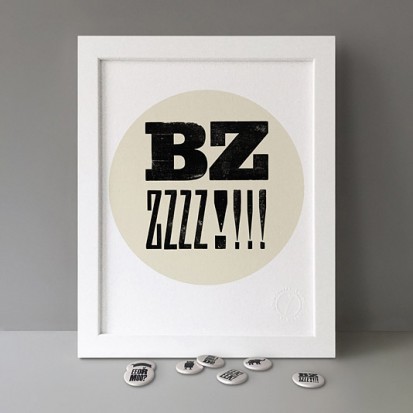 Button Badge Motif Print (STBBMP) — This carefully curated edition features designs from Stereohype's ever-growing one inch (25mm) button badge collection. The circular artworks are enlarged to seven inch (178mm) and printed on demand on a beautifully textured paper (portrait, 8 x 10" / 203 x 254mm). The print series already includes over 500 artworks and will further grow to be as rich and versatile as Stereohype's widely-acclaimed button badge collection. The badge collection already features over 1,700 artworks by over 600 established and emerging illustrators, graphic designers, typographers, photographers and artists from around the world. Some of Stereohype's button badge motifs are clearly better suited to be enlarged and featured on a print than others, but many hundreds of designs will make amazing print motifs. More prints are regularly added to this Stereohype range. Each print comes with the according button badge. We also have an optional custom frame for Button Badge Motif Prints (as seen in previews). This wooden high quality custom frame is built with a matt, white 'small alpha' frame made by our local London, Clerkenwell framer. Frames are also made on demand.