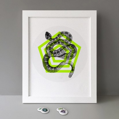 Button Badge Motif Print (STBBMP) — This carefully curated edition features designs from Stereohype's ever-growing one inch (25mm) button badge collection. The circular artworks are enlarged to seven inch (178mm) and printed on demand on a beautifully textured paper (portrait, 8 x 10" / 203 x 254mm). The print series already includes over 500 artworks and will further grow to be as rich and versatile as Stereohype's widely-acclaimed button badge collection. The badge collection already features over 1,700 artworks by over 600 established and emerging illustrators, graphic designers, typographers, photographers and artists from around the world. Some of Stereohype's button badge motifs are clearly better suited to be enlarged and featured on a print than others, but many hundreds of designs will make amazing print motifs. More prints are regularly added to this Stereohype range. Each print comes with the according button badge. We also have an optional custom frame for Button Badge Motif Prints (as seen in previews). This wooden high quality custom frame is built with a matt, white 'small alpha' frame made by our local London, Clerkenwell framer. Frames are also made on demand.