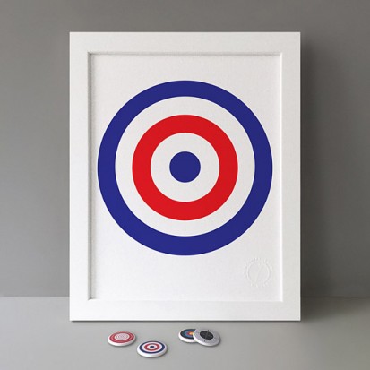 Button Badge Motif Print (STBBMP) — This carefully curated edition features designs from Stereohype's ever-growing one inch (25mm) button badge collection. The circular artworks are enlarged to seven inch (178mm) and printed on demand on a beautifully textured paper (portrait, 8 x 10" / 203 x 254mm). The print series already includes over 500 artworks and will further grow to be as rich and versatile as Stereohype's widely-acclaimed button badge collection. The badge collection already features over 1,700 artworks by over 600 established and emerging illustrators, graphic designers, typographers, photographers and artists from around the world. Some of Stereohype's button badge motifs are clearly better suited to be enlarged and featured on a print than others, but many hundreds of designs will make amazing print motifs. More prints are regularly added to this Stereohype range. Each print comes with the according button badge. We also have an optional custom frame for Button Badge Motif Prints (as seen in previews). This wooden high quality custom frame is built with a matt, white 'small alpha' frame made by our local London, Clerkenwell framer. Frames are also made on demand.