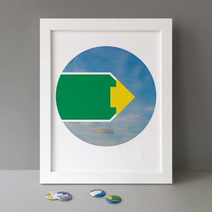 Button Badge Motif Print (STBBMP) — This carefully curated edition features designs from Stereohype's ever-growing one inch (25mm) button badge collection. The circular artworks are enlarged to seven inch (178mm) and printed on demand on a beautifully textured paper (portrait, 8 x 10" / 203 x 254mm). The print series already includes over 500 artworks and will further grow to be as rich and versatile as Stereohype's widely-acclaimed button badge collection. The badge collection already features over 1,700 artworks by over 600 established and emerging illustrators, graphic designers, typographers, photographers and artists from around the world. Some of Stereohype's button badge motifs are clearly better suited to be enlarged and featured on a print than others, but many hundreds of designs will make amazing print motifs. More prints are regularly added to this Stereohype range. Each print comes with the according button badge. We also have an optional custom frame for Button Badge Motif Prints (as seen in previews). This wooden high quality custom frame is built with a matt, white 'small alpha' frame made by our local London, Clerkenwell framer. Frames are also made on demand.