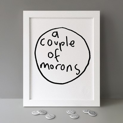 Button Badge Motif Print (STBBMP) — This carefully curated edition features designs from Stereohype's ever-growing one inch (25mm) button badge collection. The circular artworks are enlarged to seven inch (178mm) and printed on demand on a beautifully textured paper (portrait, 8 x 10" / 203 x 254mm). The print series already includes over 500 artworks and will further grow to be as rich and versatile as Stereohype's widely-acclaimed button badge collection. The badge collection already features over 1,700 artworks by over 600 established and emerging illustrators, graphic designers, typographers, photographers and artists from around the world. Some of Stereohype's button badge motifs are clearly better suited to be enlarged and featured on a print than others, but many hundreds of designs will make amazing print motifs. More prints are regularly added to this Stereohype range. Each print comes with the according button badge. We also have an optional custom frame for Button Badge Motif Prints (as seen in previews). This wooden high quality custom frame is built with a matt, white 'small alpha' frame made by our local London, Clerkenwell framer. Frames are also made on demand.