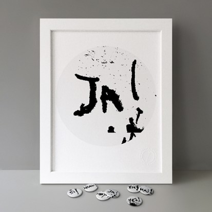 Button Badge Motif Print (STBBMP) — This carefully curated edition features designs from Stereohype's ever-growing one inch (25mm) button badge collection. The circular artworks are enlarged to seven inch (178mm) and printed on demand on a beautifully textured paper (portrait, 8 x 10" / 203 x 254mm). The print series already includes over 500 artworks and will further grow to be as rich and versatile as Stereohype's widely-acclaimed button badge collection. The badge collection already features over 1,700 artworks by over 600 established and emerging illustrators, graphic designers, typographers, photographers and artists from around the world. Some of Stereohype's button badge motifs are clearly better suited to be enlarged and featured on a print than others, but many hundreds of designs will make amazing print motifs. More prints are regularly added to this Stereohype range. Each print comes with the according button badge. We also have an optional custom frame for Button Badge Motif Prints (as seen in previews). This wooden high quality custom frame is built with a matt, white 'small alpha' frame made by our local London, Clerkenwell framer. Frames are also made on demand.