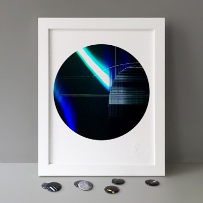 This artwork is from button badge gift box Broken Beauty containing badges from B.I.O. (By Invitation Only) Button Badge Series 17. The glitch visuals by FL@33's Tomi Vollauschek are from his collection of digital photographs featuring broken monitors, computer screens and handheld touchscreen devices. The pictures represent an abstract optimism celebrated by persevering and by discovering and holding on to occasional beauty in unforeseen moments of accidents and destruction. Artworks by FL@33's Tomi Vollauschek are signed at the back.