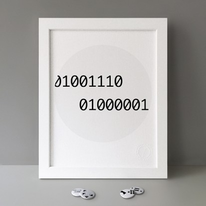 Button Badge Motif Print (STBBMP) — This carefully curated edition features designs from Stereohype's ever-growing one inch (25mm) button badge collection. The circular artworks are enlarged to seven inch (178mm) and printed on demand on a beautifully textured paper (portrait, 8 x 10" / 203 x 254mm). The print series already includes over 500 artworks and will further grow to be as rich and versatile as Stereohype's widely-acclaimed button badge collection. The badge collection already features over 1,700 artworks by over 600 established and emerging illustrators, graphic designers, typographers, photographers and artists from around the world. Some of Stereohype's button badge motifs are clearly better suited to be enlarged and featured on a print than others, but many hundreds of designs will make amazing print motifs. More prints are regularly added to this Stereohype range. Each print comes with the according button badge. We also have an optional custom frame for Button Badge Motif Prints (as seen in previews). This wooden high quality custom frame is built with a matt, white 'small alpha' frame made by our local London, Clerkenwell framer. Frames are also made on demand.