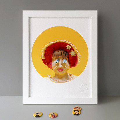 Button Badge Motif Print (STBBMP) — This carefully curated edition features designs from Stereohype's ever-growing one inch (25mm) button badge collection. The circular artworks are enlarged to seven inch (178mm) and printed on demand on a beautifully textured paper (portrait, 8 x 10" / 203 x 254mm). The print series already includes over 500 artworks and will further grow to be as rich and versatile as Stereohype's widely-acclaimed button badge collection. The badge collection already features over 1,700 artworks by over 600 established and emerging illustrators, graphic designers, typographers, photographers and artists from around the world. Some of Stereohype's button badge motifs are clearly better suited to be enlarged and featured on a print than others, but many hundreds of designs will make amazing print motifs. More prints are regularly added to this Stereohype range. Each print comes with the according button badge. We also have an optional custom frame for Button Badge Motif Prints (as seen in previews). This wooden high quality custom frame is built with a matt, white 'small alpha' frame made by our local London, Clerkenwell framer. Frames are also made on demand.
