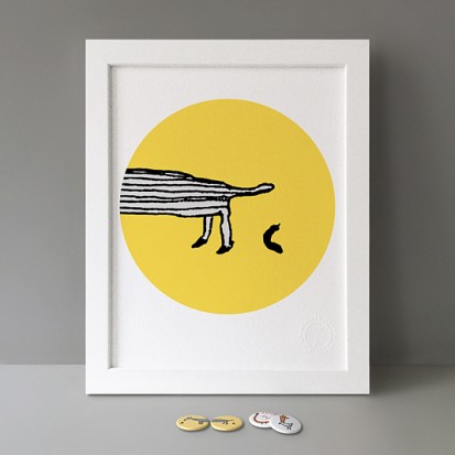 Button Badge Motif Print (STBBMP) — This carefully curated edition features designs from Stereohype's ever-growing one inch (25mm) button badge collection. The circular artworks are enlarged to seven inch (178mm) and printed on demand on a beautifully textured paper (portrait, 8 x 10" / 203 x 254mm). The print series already includes over 500 artworks and will further grow to be as rich and versatile as Stereohype's widely-acclaimed button badge collection. The badge collection already features over 1,700 artworks by over 600 established and emerging illustrators, graphic designers, typographers, photographers and artists from around the world. Some of Stereohype's button badge motifs are clearly better suited to be enlarged and featured on a print than others, but many hundreds of designs will make amazing print motifs. More prints are regularly added to this Stereohype range. Each print comes with the according button badge. We also have an optional custom frame for Button Badge Motif Prints (as seen in previews). This wooden high quality custom frame is built with a matt, white 'small alpha' frame made by our local London, Clerkenwell framer. Frames are also made on demand.