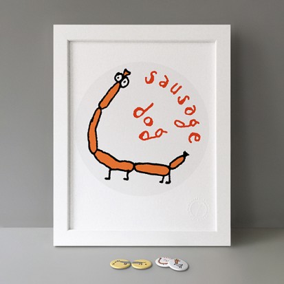 Glove Chicken (Handschuh Huhn), Sausage Dog and Double Feature Dog (with various sausages). This artwork is from Stereohype's B.I.O. (By Invitation Only) Button Badge Series 2 is also available as part of the elegant Button Badge Gift Box Dogs.