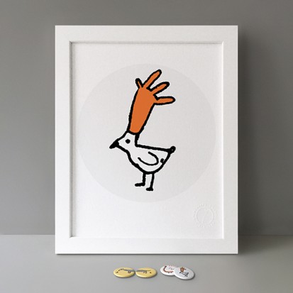 Button Badge Motif Print (STBBMP) — This carefully curated edition features designs from Stereohype's ever-growing one inch (25mm) button badge collection. The circular artworks are enlarged to seven inch (178mm) and printed on demand on a beautifully textured paper (portrait, 8 x 10" / 203 x 254mm). The print series already includes over 500 artworks and will further grow to be as rich and versatile as Stereohype's widely-acclaimed button badge collection. The badge collection already features over 1,700 artworks by over 600 established and emerging illustrators, graphic designers, typographers, photographers and artists from around the world. Some of Stereohype's button badge motifs are clearly better suited to be enlarged and featured on a print than others, but many hundreds of designs will make amazing print motifs. More prints are regularly added to this Stereohype range. Each print comes with the according button badge. We also have an optional custom frame for Button Badge Motif Prints (as seen in previews). This wooden high quality custom frame is built with a matt, white 'small alpha' frame made by our local London, Clerkenwell framer. Frames are also made on demand.
