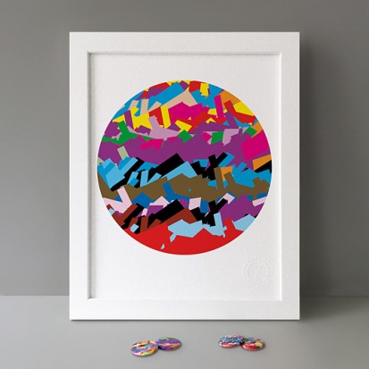 Button Badge Motif Print (STBBMP) — This carefully curated edition features designs from Stereohype's ever-growing one inch (25mm) button badge collection. The circular artworks are enlarged to seven inch (178mm) and printed on demand on a beautifully textured paper (portrait, 8 x 10" / 203 x 254mm). The print series already includes over 500 artworks and will further grow to be as rich and versatile as Stereohype's widely-acclaimed button badge collection. The badge collection already features over 1,700 artworks by over 600 established and emerging illustrators, graphic designers, typographers, photographers and artists from around the world. Some of Stereohype's button badge motifs are clearly better suited to be enlarged and featured on a print than others, but many hundreds of designs will make amazing print motifs. More prints are regularly added to this Stereohype range. Each print comes with the according button badge. We also have an optional custom frame for Button Badge Motif Prints (as seen in previews). This wooden high quality custom frame is built with a matt, white 'small alpha' frame made by our local London, Clerkenwell framer. Frames are also made on demand.
