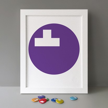 Button Badge Motif Print (STBBMP) — This carefully curated edition features designs from Stereohype's ever-growing one inch (25mm) button badge collection. The circular artworks are enlarged to seven inch (178mm) and printed on demand on a beautifully textured paper (portrait, 8 x 10" / 203 x 254mm). The print series already includes over 500 artworks and will further grow to be as rich and versatile as Stereohype's widely-acclaimed button badge collection. The badge collection already features over 1,700 artworks by over 600 established and emerging illustrators, graphic designers, typographers, photographers and artists from around the world. Some of Stereohype's button badge motifs are clearly better suited to be enlarged and featured on a print than others, but many hundreds of designs will make amazing print motifs. More prints are regularly added to this Stereohype range. Each print comes with the according button badge. We also have an optional custom frame for Button Badge Motif Prints (as seen in previews). This wooden high quality custom frame is built with a matt, white 'small alpha' frame made by our local London, Clerkenwell framer. Frames are also made on demand.