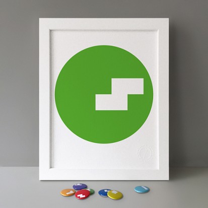 Button Badge Motif Print (STBBMP) — This carefully curated edition features designs from Stereohype's ever-growing one inch (25mm) button badge collection. The circular artworks are enlarged to seven inch (178mm) and printed on demand on a beautifully textured paper (portrait, 8 x 10" / 203 x 254mm). The print series already includes over 500 artworks and will further grow to be as rich and versatile as Stereohype's widely-acclaimed button badge collection. The badge collection already features over 1,700 artworks by over 600 established and emerging illustrators, graphic designers, typographers, photographers and artists from around the world. Some of Stereohype's button badge motifs are clearly better suited to be enlarged and featured on a print than others, but many hundreds of designs will make amazing print motifs. More prints are regularly added to this Stereohype range. Each print comes with the according button badge. We also have an optional custom frame for Button Badge Motif Prints (as seen in previews). This wooden high quality custom frame is built with a matt, white 'small alpha' frame made by our local London, Clerkenwell framer. Frames are also made on demand.
