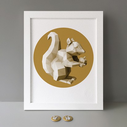 Squirrel 4 (polygon, gold, front, right) print