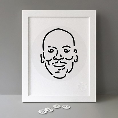Button Badge Motif Print (STBBMP) — This carefully curated edition features designs from Stereohype's ever-growing one inch (25mm) button badge collection. The circular artworks are enlarged to seven inch (178mm) and printed on demand on a beautifully textured paper (portrait, 8 x 10" / 203 x 254mm). The print series already includes over 500 artworks and will further grow to be as rich and versatile as Stereohype's widely-acclaimed button badge collection. The badge collection already features over 1,700 artworks by over 600 established and emerging illustrators, graphic designers, typographers, photographers and artists from around the world. Some of Stereohype's button badge motifs are clearly better suited to be enlarged and featured on a print than others, but many hundreds of designs will make amazing print motifs. More prints are regularly added to this Stereohype range. Each print comes with the according button badge. We also have an optional custom frame for Button Badge Motif Prints (as seen in previews). This wooden high quality custom frame is built with a matt, white 'small alpha' frame made by our local London, Clerkenwell framer. Frames are also made on demand.