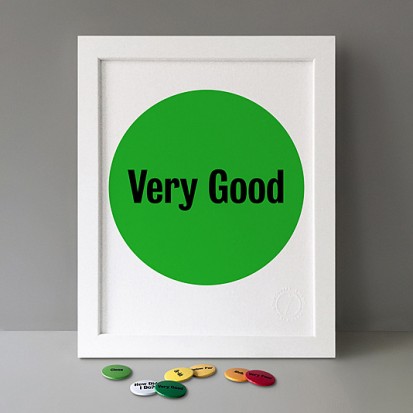 Button Badge Motif Print (STBBMP) — This carefully curated edition features designs from Stereohype's ever-growing one inch (25mm) button badge collection. The circular artworks are enlarged to seven inch (178mm) and printed on demand on a beautifully textured paper (portrait, 8 x 10" / 203 x 254mm). The print series already includes over 500 artworks and will further grow to be as rich and versatile as Stereohype's widely-acclaimed button badge collection. The badge collection already features over 1,700 artworks by over 600 established and emerging illustrators, graphic designers, typographers, photographers and artists from around the world. Some of Stereohype's button badge motifs are clearly better suited to be enlarged and featured on a print than others, but many hundreds of designs will make amazing print motifs. More prints are regularly added to this Stereohype range. Each print comes with the according button badge. We also have an optional custom frame for Button Badge Motif Prints (as seen in previews). This wooden high quality custom frame is built with a matt, white 'small alpha' frame made by our local London, Clerkenwell framer. Frames are also made on demand.