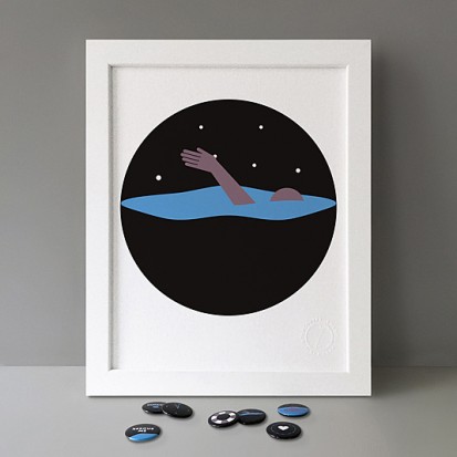 Button Badge Motif Print (STBBMP) — This carefully curated edition features designs from Stereohype's ever-growing one inch (25mm) button badge collection. The circular artworks are enlarged to seven inch (178mm) and printed on demand on a beautifully textured paper (portrait, 8 x 10" / 203 x 254mm). The print series already includes over 500 artworks and will further grow to be as rich and versatile as Stereohype's widely-acclaimed button badge collection. The badge collection already features over 1,700 artworks by over 600 established and emerging illustrators, graphic designers, typographers, photographers and artists from around the world. Some of Stereohype's button badge motifs are clearly better suited to be enlarged and featured on a print than others, but many hundreds of designs will make amazing print motifs. More prints are regularly added to this Stereohype range. Each print comes with the according button badge. We also have an optional custom frame for Button Badge Motif Prints (as seen in previews). This wooden high quality custom frame is built with a matt, white 'small alpha' frame made by our local London, Clerkenwell framer. Frames are also made on demand.