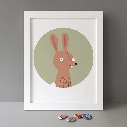 Button Badge Motif Print (STBBMP) — This carefully curated edition features designs from Stereohype's ever-growing one inch (25mm) button badge collection. The circular artworks are enlarged to seven inch (178mm) and printed on demand on a beautifully textured paper (portrait, 8 x 10" / 203 x 254mm). The print series already includes over 500 artworks and will further grow to be as rich and versatile as Stereohype's widely-acclaimed button badge collection. The badge collection already features over 1,700 artworks by over 600 established and emerging illustrators, graphic designers, typographers, photographers and artists from around the world. Some of Stereohype's button badge motifs are clearly better suited to be enlarged and featured on a print than others, but many hundreds of designs will make amazing print motifs. More prints are regularly added to this Stereohype range. Each print comes with the according button badge. We also have an optional custom frame for Button Badge Motif Prints (as seen in previews). This wooden high quality custom frame is built with a matt, white 'small alpha' frame made by our local London, Clerkenwell framer. Frames are also made on demand.