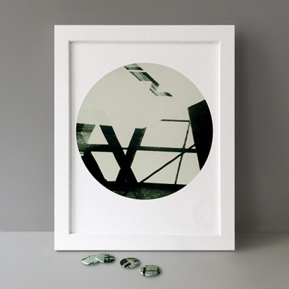 Architectonic: Inspired by an interest in abstraction, structure and surface texture. This series of imagined spaces was created by constructing and deconstructing architectural forms using analogue processes. The emphasis is on geometric shapes and intersecting diagonal lines. This artwork is from Stereohype's B.I.O. (By Invitation Only) Button Badge Series 19.