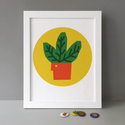 Button Badge Motif Print (STBBMP) — This carefully curated edition features designs from Stereohype's ever-growing one inch (25mm) button badge collection. The circular artworks are enlarged to seven inch (178mm) and printed on demand on a beautifully textured paper (portrait, 8 x 10" / 203 x 254mm). The print series already includes over 500 artworks and will further grow to be as rich and versatile as Stereohype's widely-acclaimed button badge collection. The badge collection already features over 1,700 artworks by over 600 established and emerging illustrators, graphic designers, typographers, photographers and artists from around the world. Some of Stereohype's button badge motifs are clearly better suited to be enlarged and featured on a print than others, but many hundreds of designs will make amazing print motifs. More prints are regularly added to this Stereohype range. Each print comes with the according button badge. We also have an optional custom frame for Button Badge Motif Prints (as seen in previews). This wooden high quality custom frame is built with a matt, white 'small alpha' frame made by our local London, Clerkenwell framer. Frames are also made on demand.