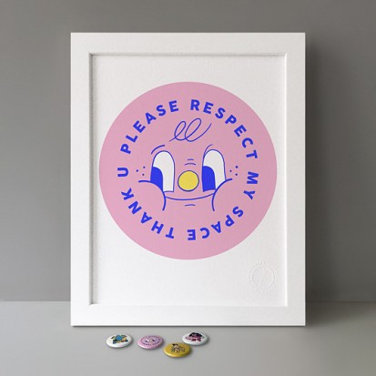 Button Badge Motif Print (STBBMP) — This carefully curated edition features designs from Stereohype's ever-growing one inch (25mm) button badge collection. The circular artworks are enlarged to seven inch (178mm) and printed on demand on a beautifully textured paper (portrait, 8 x 10" / 203 x 254mm). The print series already includes over 500 artworks and will further grow to be as rich and versatile as Stereohype's widely-acclaimed button badge collection. The badge collection already features over 1,700 artworks by over 600 established and emerging illustrators, graphic designers, typographers, photographers and artists from around the world. Some of Stereohype's button badge motifs are clearly better suited to be enlarged and featured on a print than others, but many hundreds of designs will make amazing print motifs. More prints are regularly added to this Stereohype range. Each print comes with the according button badge. We also have an optional custom frame for Button Badge Motif Prints (as seen in previews). This wooden high quality custom frame is built with a matt, white 'small alpha' frame made by our local London, Clerkenwell framer. Frames are also made on demand.