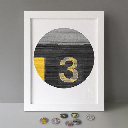 Button Badge Motif Print (STBBMP) — This carefully curated edition features designs from Stereohype's ever-growing one inch (25mm) button badge collection. The circular artworks are enlarged to seven inch (178mm) and printed on demand on a beautifully textured paper (portrait, 8 x 10" / 203 x 254mm). The print series already includes over 500 artworks and will further grow to be as rich and versatile as Stereohype's widely-acclaimed button badge collection. The badge collection already features over 1,700 artworks by over 600 established and emerging illustrators, graphic designers, typographers, photographers and artists from around the world. Some of Stereohype's button badge motifs are clearly better suited to be enlarged and featured on a print than others, but many hundreds of designs will make amazing print motifs. More prints are regularly added to this Stereohype range. Each print comes with the according button badge. We also have an optional custom frame for Button Badge Motif Prints (as seen in previews). This wooden high quality custom frame is built with a matt, white 'small alpha' frame made by our local London, Clerkenwell framer. Frames are also made on demand.