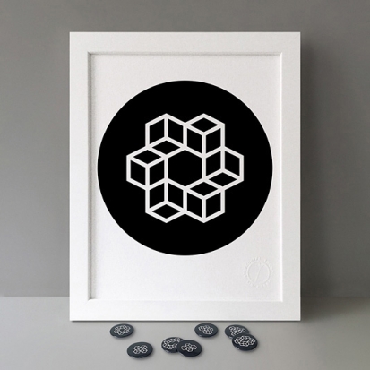 Button Badge Motif Print (STBBMP) — This carefully curated edition features designs from Stereohype's ever-growing one inch (25mm) button badge collection. The circular artworks are enlarged to seven inch (178mm) and printed on demand on a beautifully textured paper (portrait, 8 x 10" / 203 x 254mm). The print series already includes over 500 artworks and will further grow to be as rich and versatile as Stereohype's widely-acclaimed button badge collection. The badge collection already features over 1,700 artworks by over 600 established and emerging illustrators, graphic designers, typographers, photographers and artists from around the world. Some of Stereohype's button badge motifs are clearly better suited to be enlarged and featured on a print than others, but many hundreds of designs will make amazing print motifs. More prints are regularly added to this Stereohype range. Each print comes with the according button badge. We also have an optional custom frame for Button Badge Motif Prints (as seen in previews). This wooden high quality custom frame is built with a matt, white 'small alpha' frame made by our local London, Clerkenwell framer. Frames are also made on demand.