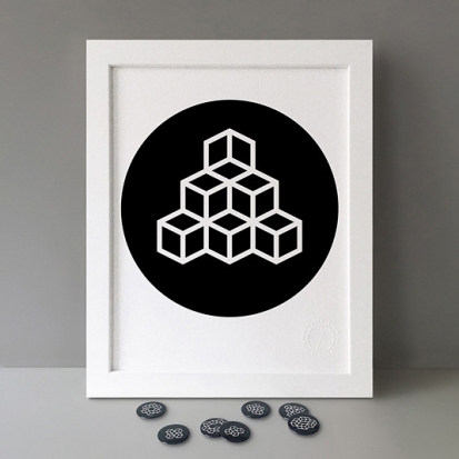 Button Badge Motif Print (STBBMP) — This carefully curated edition features designs from Stereohype's ever-growing one inch (25mm) button badge collection. The circular artworks are enlarged to seven inch (178mm) and printed on demand on a beautifully textured paper (portrait, 8 x 10" / 203 x 254mm). The print series already includes over 500 artworks and will further grow to be as rich and versatile as Stereohype's widely-acclaimed button badge collection. The badge collection already features over 1,700 artworks by over 600 established and emerging illustrators, graphic designers, typographers, photographers and artists from around the world. Some of Stereohype's button badge motifs are clearly better suited to be enlarged and featured on a print than others, but many hundreds of designs will make amazing print motifs. More prints are regularly added to this Stereohype range. Each print comes with the according button badge. We also have an optional custom frame for Button Badge Motif Prints (as seen in previews). This wooden high quality custom frame is built with a matt, white 'small alpha' frame made by our local London, Clerkenwell framer. Frames are also made on demand.