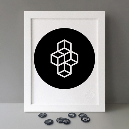 Button Badge Motif Print (STBBMP) — This carefully curated edition features designs from Stereohype's ever-growing one inch (25mm) button badge collection. The circular artworks are enlarged to seven inch (178mm) and printed on demand on a beautifully textured paper (portrait, 8 x 10" / 203 x 254mm). The print series already includes over 500 artworks and will further grow to be as rich and versatile as Stereohype's widely-acclaimed button badge collection. The badge collection already features over 1,700 artworks by over 600 established and emerging illustrators, graphic designers, typographers, photographers and artists from around the world. Some of Stereohype's button badge motifs are clearly better suited to be enlarged and featured on a print than others, but many hundreds of designs will make amazing print motifs. More prints are regularly added to this Stereohype range. Each print comes with the according button badge. We also have an optional custom frame for Button Badge Motif Prints (as seen in previews). This wooden high quality custom frame is built with a matt, white 'small alpha' frame made by our local London, Clerkenwell framer. Frames are also made on demand.