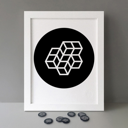 Button Badge Motif Print (STBBMP) — This carefully curated edition features designs from Stereohype's ever-growing one inch (25mm) button badge collection. The circular artworks are enlarged to seven inch (178mm) and printed on demand on a beautifully textured paper (portrait, 8 x 10" / 203 x 254mm). The print series already includes over 500 artworks and will further grow to be as rich and versatile as Stereohype's widely-acclaimed button badge collection. The badge collection already features over 1,700 artworks by over 600 established and emerging illustrators, graphic designers, typographers, photographers and artists from around the world. Some of Stereohype's button badge motifs are clearly better suited to be enlarged and featured on a print than others, but many hundreds of designs will make amazing print motifs. More prints are regularly added to this Stereohype range. Each print comes with the according button badge. We also have an optional custom frame for Button Badge Motif Prints (as seen in previews). This wooden high quality custom frame is built with a matt, white 'small alpha' frame made by our local London, Clerkenwell framer. Frames are also made on demand.