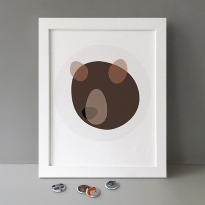 Button Badge Motif Print (STBBMP) — This carefully curated edition features designs from Stereohype's ever-growing one inch (25mm) button badge collection. The circular artworks are enlarged to seven inch (178mm) and printed on demand on a beautifully textured paper (portrait, 8 x 10" / 203 x 254mm). The print series already includes over 500 artworks and will further grow to be as rich and versatile as Stereohype's widely-acclaimed button badge collection. The badge collection already features over 1,700 artworks by over 600 established and emerging illustrators, graphic designers, typographers, photographers and artists from around the world. Some of Stereohype's button badge motifs are clearly better suited to be enlarged and featured on a print than others, but many hundreds of designs will make amazing print motifs. More prints are regularly added to this Stereohype range. Each print comes with the according button badge. We also have an optional custom frame for Button Badge Motif Prints (as seen in previews). This wooden high quality custom frame is built with a matt, white 'small alpha' frame made by our local London, Clerkenwell framer. Frames are also made on demand.