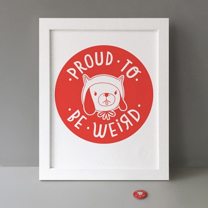 'I drew Proud To Be Weird after another week of being called 'weird' for things like enjoying running or eating many potatoes. I've since come to believe that being called weird is a good thing. Wear that kitty hat even if you're a dog and don't give a falafel about what anybody thinks, ok?' Anke Weckmann