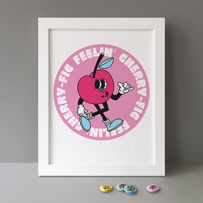 Button Badge Motif Print (STBBMP) — This carefully curated edition features designs from Stereohype's ever-growing one inch (25mm) button badge collection. The circular artworks are enlarged to seven inch (178mm) and printed on demand on a beautifully textured paper (portrait, 8 x 10" / 203 x 254mm). The print series already includes over 500 artworks and will further grow to be as rich and versatile as Stereohype's widely-acclaimed button badge collection. The badge collection already features over 1,700 artworks by over 600 established and emerging illustrators, graphic designers, typographers, photographers and artists from around the world. Some of Stereohype's button badge motifs are clearly better suited to be enlarged and featured on a print than others, but many hundreds of designs will make amazing print motifs. More prints are regularly added to this Stereohype range. Each print comes with the according button badge. We also have an optional custom frame for Button Badge Motif Prints (as seen in previews). This wooden high quality custom frame is built with a matt, white 'small alpha' frame made by our local London, Clerkenwell framer. Frames are also made on demand.