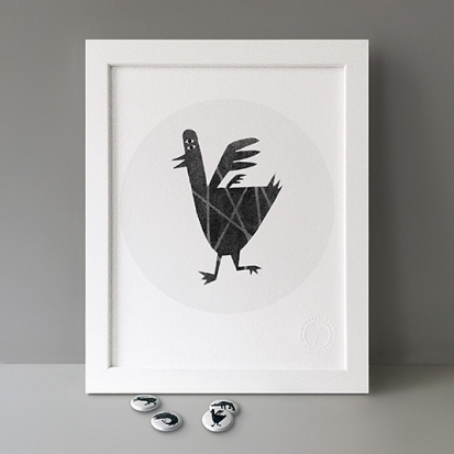 Button Badge Motif Print (STBBMP) — This carefully curated edition features designs from Stereohype's ever-growing one inch (25mm) button badge collection. The circular artworks are enlarged to seven inch (178mm) and printed on demand on a beautifully textured paper (portrait, 8 x 10" / 203 x 254mm). The print series already includes over 500 artworks and will further grow to be as rich and versatile as Stereohype's widely-acclaimed button badge collection. The badge collection already features over 1,700 artworks by over 600 established and emerging illustrators, graphic designers, typographers, photographers and artists from around the world. Some of Stereohype's button badge motifs are clearly better suited to be enlarged and featured on a print than others, but many hundreds of designs will make amazing print motifs. More prints are regularly added to this Stereohype range. Each print comes with the according button badge. We also have an optional custom frame for Button Badge Motif Prints (as seen in previews). This wooden high quality custom frame is built with a matt, white 'small alpha' frame made by our local London, Clerkenwell framer. Frames are also made on demand.