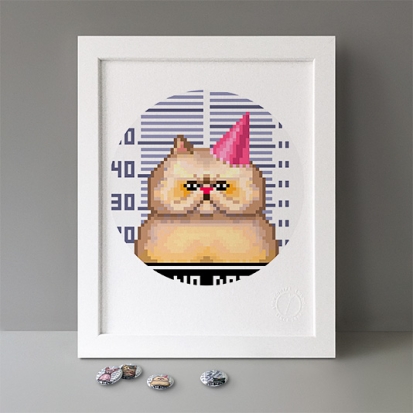 Button Badge Motif Print (STBBMP) — This carefully curated edition features designs from Stereohype's ever-growing one inch (25mm) button badge collection. The circular artworks are enlarged to seven inch (178mm) and printed on demand on a beautifully textured paper (portrait, 8 x 10" / 203 x 254mm). The print series already includes over 500 artworks and will further grow to be as rich and versatile as Stereohype's widely-acclaimed button badge collection. The badge collection already features over 1,700 artworks by over 600 established and emerging illustrators, graphic designers, typographers, photographers and artists from around the world. Some of Stereohype's button badge motifs are clearly better suited to be enlarged and featured on a print than others, but many hundreds of designs will make amazing print motifs. More prints are regularly added to this Stereohype range. Each print comes with the according button badge. We also have an optional custom frame for Button Badge Motif Prints (as seen in previews). This wooden high quality custom frame is built with a matt, white 'small alpha' frame made by our local London, Clerkenwell framer. Frames are also made on demand.