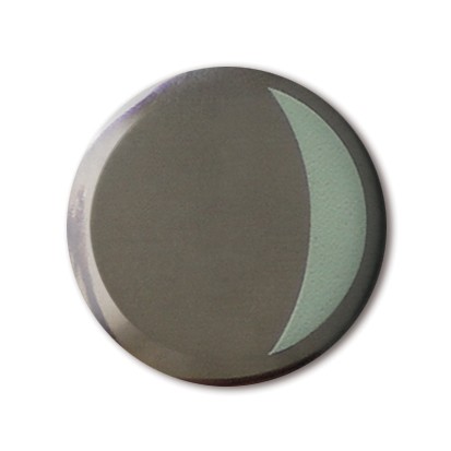 Cosmic 'glow in the dark' motifs on blank, reflective metal surface protected by the usual clear acetate film we use for all our other button badges. Clubbing anyone?