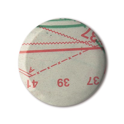 Extracted from her Mail Art project to be worn strategically on clothes. The button's patterns reveal the makings of the garment.