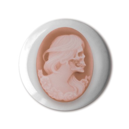 Mirror, mirror on the wall who is the deadest one of all? This badge shows death in a 'cameo' role, pretending to be a pretty girl...