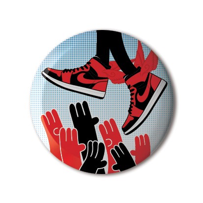 This one inch (25mm) button badge series is a collaboration between Art & Sole and Stereohype. The AFOMFS (A Few Of My Favourite Sneakers) Button Badge Series includes artworks by Andrew Joyce, Becca Thorne, David Sparshott *, Emma Kelly **, Jason Munro, Jean Jullien *, Jeffrey Bowman **, Matt Sewell, Owen Phillips, Rich Fairhead, Rob Flowers *, Rude, Scott Balmer *, Simon Peplow, Stephen Cheetham **, Tim McDonagh **, Toby Neilan and Tony Easley. / * TOY / ** Handsome Frank / Stereohype sells AFOMFS Series badges separately and gives them away as a free surprise badge with selected Stereohype T-shirts. Released: April 2013