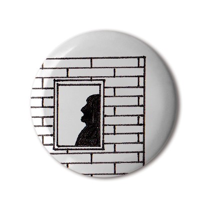 This artwork is by one of twelve winners of our tenth annual button badge design competition – selected from 593 accepted entries submitted by 156 individuals. Exceptionally this competition called for hand-drawn doodles only – all created in the gallery space of the anniversary exhibition Stereohype 2004–2014.