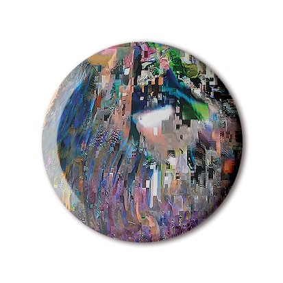 Details of glitch visuals by FL@33's Tomi Vollauschek from his collection of screenshots, photographs and digitally manipulated pictures that embrace random and often unexpected errors that technology confronts us with. Tomi's glitch artworks celebrate technology's aesthetics – inside and beyond the physical machines such as computers, hand-held touchscreen devices, film and photo cameras and in case of these glitch button badges – HD TV screens. Gradients and blurry colours are seemingly created with 'digital watercolour' – brief moments when frames per seconds meet data streaming struggles.