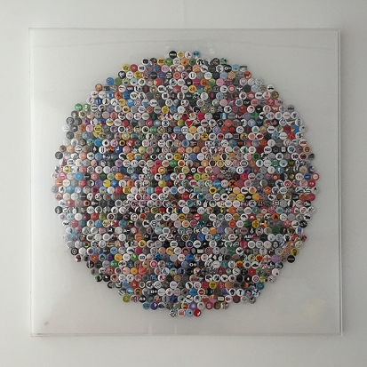 This artwork was created by FL@33 for Stereohype's 10th anniversary exhibition Stereohype 2004–2014. The first 1,000 button badges from Stereohype's growing collection are featured in this custom perspex frame. The button badges themselves were created by over 300 contributors from around the world. The perspex framed circular artwork was released in a limited edition of 10. Badges are in random order and all versions of this edition are unique therefore. Dimensions: 100cm x 100cm (39.37" x 39.37"). Please note: these circular compositions are made to order may therefore take a few days longer than our usual Stereohype times. The artwork has a weight of over 2kg. Delivery method and packaging of this delicate piece will be arranged individually. If you are based in London we will arrange for a courier to deliver it or even bring it ourselves.