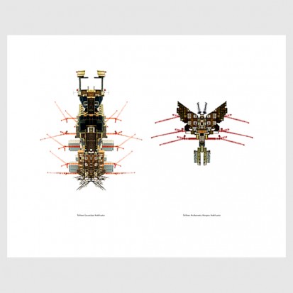 Cityscape Insects is a series of photographic artworks and an excerpt from FL@33's self-published and award-winning magazine Trans-form celebrating the beauty and of tower cranes. The four prints are showing two different Cityscape Insects each – together with the latin names of the imaginary creatures. They were first created and exhibited for FL@33's first solo exhibition in Frankfurt, Germany. The series is exclusively available at Stereohype.
