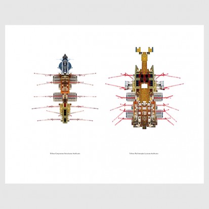 Cityscape Insects is a series of photographic artworks and an excerpt from FL@33's self-published and award-winning magazine Trans-form celebrating the beauty and of tower cranes. The four prints are showing two different Cityscape Insects each – together with the latin names of the imaginary creatures. They were first created and exhibited for FL@33's first solo exhibition in Frankfurt, Germany. The series is exclusively available at Stereohype.