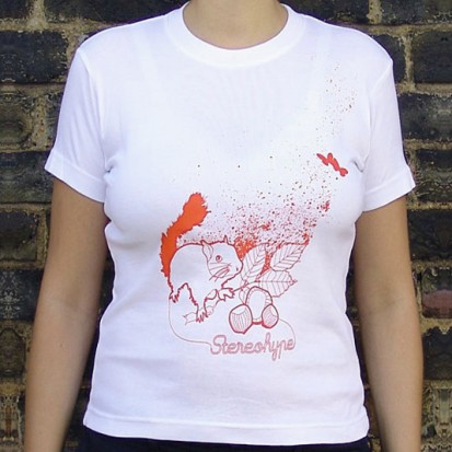 Agathe Jacquillat and Tomi Vollauschek from London-based design studio FL@33 created this Stereohype Squirrel T-shirt as part of the evolving visual identity created for stereohype.com. This second squirrel motif has been reprinted once and while the slim-fit version is now sold out – a few unisex T-shirts are currently still available via our Back Catalogue sale.
