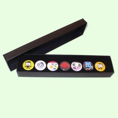 Each of these long luxury gift boxes contains seven of Stereohype's popular button badges. Selected designs are taken from Stereohype's growing button badge collection. Inside the elegant matt black cardboard gift box is a black flock pad and badges are directly pinned into it. So-called Themed Gift Boxes are curated and feature button badges designed by various creators selected from Stereohype's super-talented 600+ international contributors – artists, illustrators, designers, architects, photographers, collectives and studios. All Stereohype button badges available at stereohype.com are classic high quality one inch (25mm) metal back badges with so-called D-pin. Tiny stickers at the back of each button badge mention the artist, release date, series number, etc. Badges are printed and encapsulated with love and care in the United Kingdom.